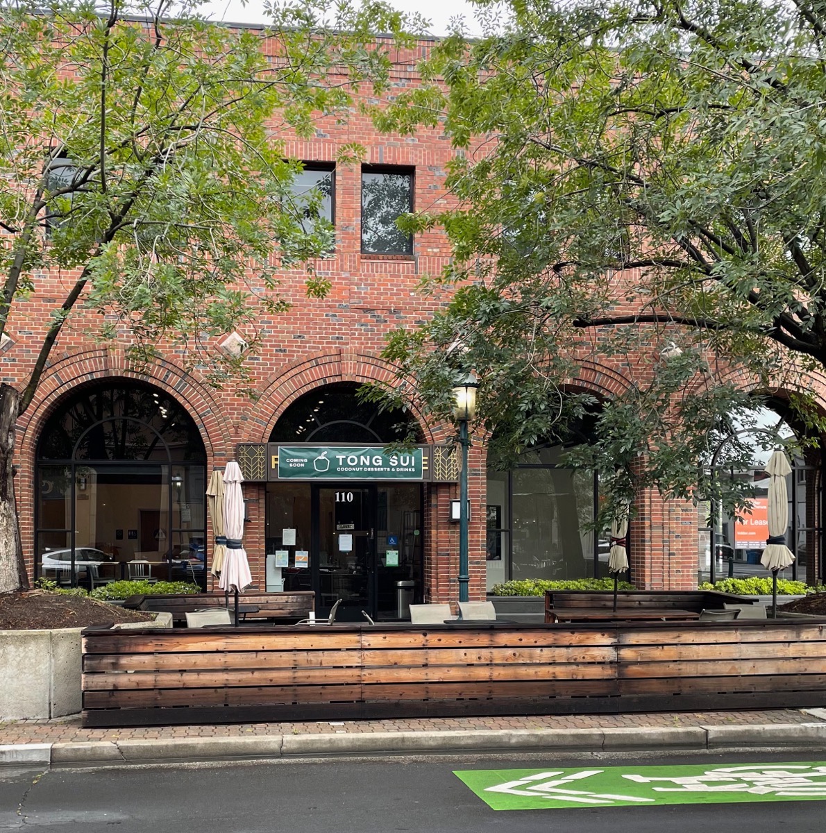 Nearby, although not on Theatre Way, Red Giant Coffee (formerly Bliss Coffee) has closed (their last day was Friday, April 15). Coming to their space on Broadway (at Winslow Street) is a new dessert/drink seller called Tong Sui. Tong Sui, which according to Wikipedia literally means “sugar water,” appears to be a Cantonese term for “any sweet, warm soup or custard served as a dessert at the end of a meal.” Our Tong Sui, however, will specialize in coconut desserts and drinks (coffee included, apparently, if the goodbye note from Red Giant Coffee is to be believed). There currently are places with this same name in San Mateo and in Sunnyvale, so this may be a third location — or this may be an altogether different place using the same name. The little logo on the banner posted above the Redwood City location’s doors (shown above) doesn’t match what I’m seeing for the other stores, but I note that the menus for those other stores are full of coconut desserts. Thus, there seems to be a good chance that ours is indeed an extension of those other shops. Regardless, we should find out pretty soon.