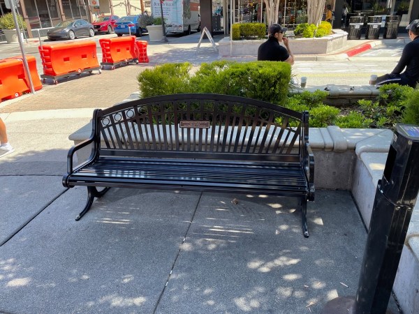 The plaque on the above bench, incidentally, says to me that the cost of the bench was donated. Just in case Redwood City cites a lack of funds as its reason for not putting benches along its many well-traveled walkways…