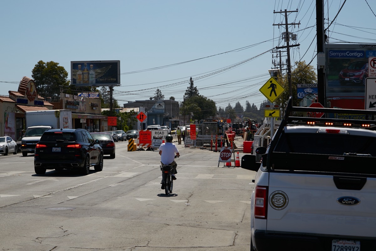 This is a huge project, and given that this entire section of Middlefield Road, unlike the section that Redwood City recently renovated, is entirely lined with restaurants, shops, and other small businesses, one key to the project’s success is maintaining access to those businesses while the project is underway. That certainly complicates things, as I saw when I walked the length of the project this week.