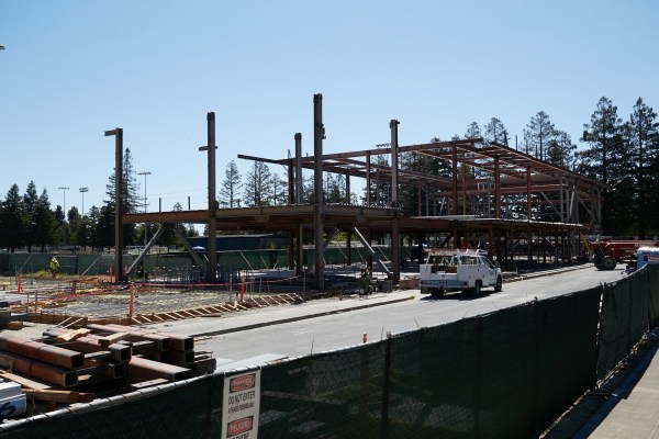 Out on Woodside Road, the small office building under construction at 1390 Woodside Road (at the corner of Massachusetts Avenue and Woodside Road) continues apace: