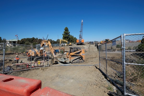 As for the county’s navigation center site, there is a lot of construction activity happening on the site right now, but little of interest to photograph: so far the work seems confined to running utilities and preparing the ground for the pre-fab buildings that will soon make up the development. Of more interest to me at the moment, though, is the related project (actually being done on behalf of the city by the developer of the 1548 Maple Street project, I believe) to extend Blomquist Street around and behind the Redwood City Police Department offices. That extension will be the means by which people will ultimately access the county’s navigation center, now that the section of Maple Street by which you used to access the site is gone (the property’s address is, or was, 1469 Maple Street). The first part of that extension, from where Blomquist Street currently dead-ends into Maple Street (Maple previously made a “U”; only one leg of the “U” has been eliminated) will begin with a bridge across a small canal, and that is where a lot of the visible progress is currently being made: