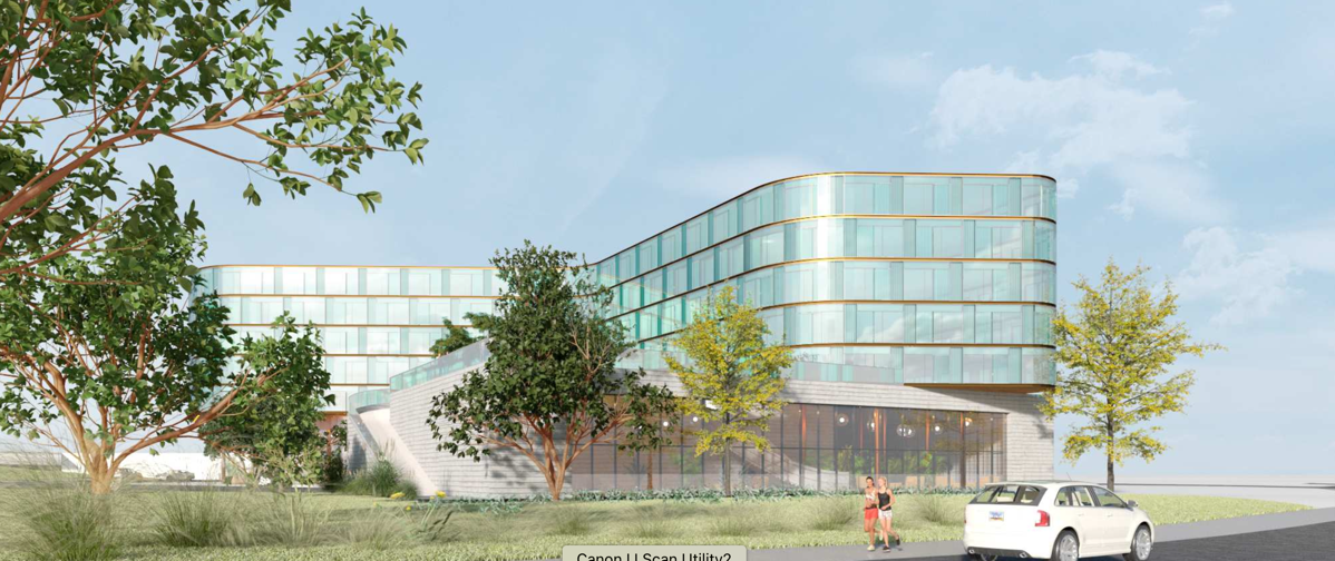 The soft curves visible in the design of the Amenity building are reflected in many of the other buildings planned for the Redwood LIFE project. In particular, in the planned hotel:
