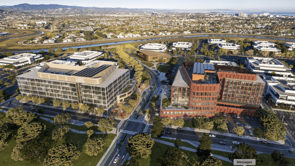 On to some pictures. Here is a rendering showing what part of the campus could look like after Phase 1 is complete (all renderings are courtesy of the developer, and come from the project’s planning application, which can be downloaded from Redwood City’s website):