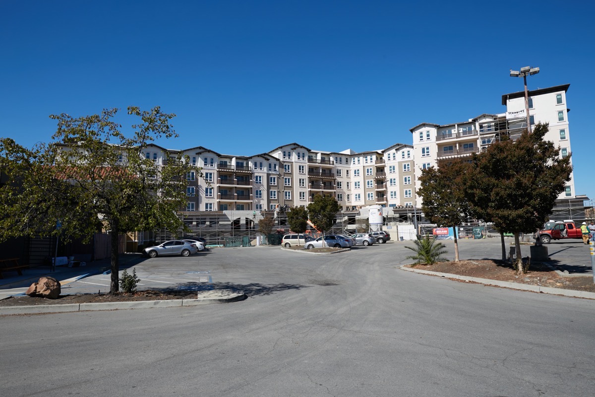 Although it still lacks its exterior surfaces, the building on El Camino Real, which is being constructed as part of the nearby ELCO Yards project, has achieved its final form: