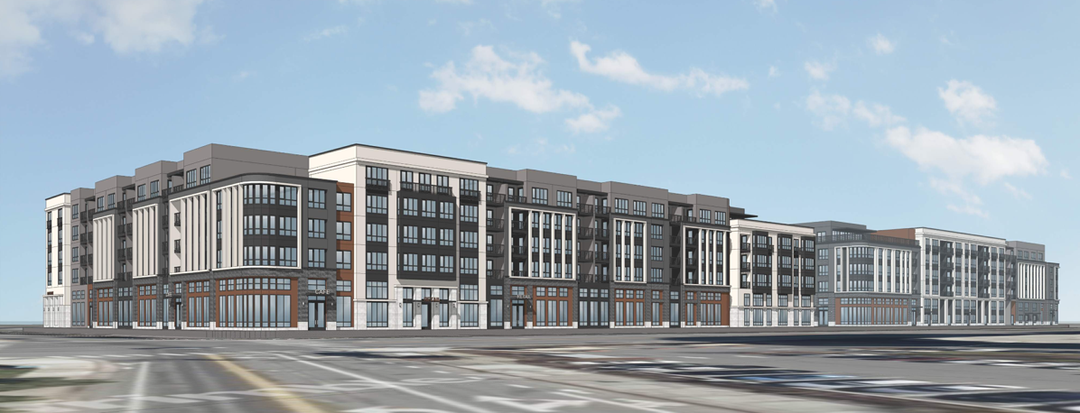 I keep studying the latest rendering and comparing it with the preliminary plans. I should point out that although that first drawing appears to show a massive monolith of a building, that’s not what we’d be getting. In truth, what the developer is proposing is two separate buildings, with a large chunk of the development’s common space — some 15,000 square feet, including the resident’s pool — separating the two. The buildings would have hollow centers, with an 18,000-square-foot courtyard in the center of each — although those, of course, would not be visible from the outside. Small roof decks on the top (sixth) floor of each building would look out over Veterans Boulevard.