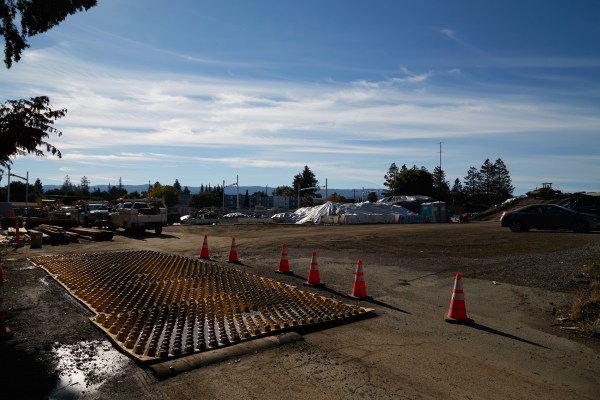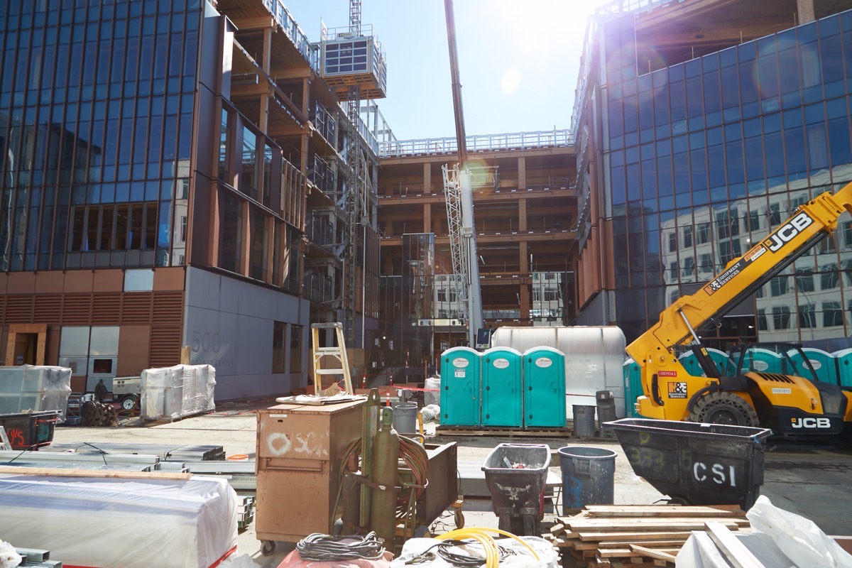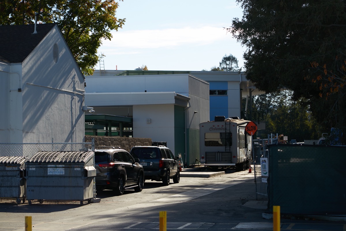 The county’s under-construction office building at the corner of Middlefield Road and Marshall Street is looking pretty buttoned-up from either street, but step onto the County Center property, as I did, and take a peek at the backside of the building, and you’ll see that the inner part of the “H” is still pretty wide open: