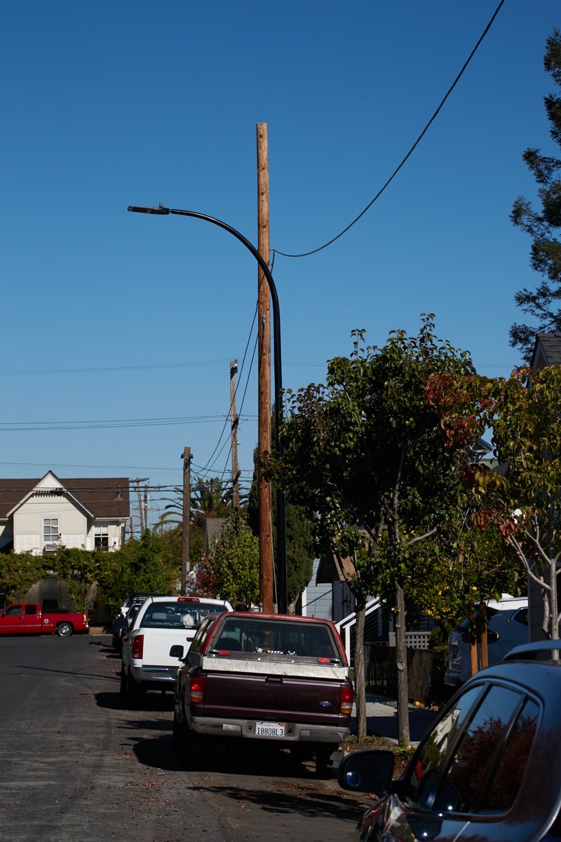 Several years ago — in 2015 — I walked the length of Middlefield Road, from Redwood City down to where North Fair Oaks borders on Atherton. Naturally I wrote a bit about that walk, although I mainly used it as an opportunity to photograph the entire route for future use. This week, wanting to check up on the county’s project to upgrade Middlefield Road through North Fair Oaks, I repeated that walk. It gave me a good chance to admire the similar project that Redwood City recently completed, wherein the city gave the section of Middlefield Road between Main Street and Woodside Road a significant upgrade. If you’ve been down that section of Middlefield Road lately, you’ll probably have noticed the much wider sidewalks, the bike lanes physically separated from the vehicular driving lanes, the planters, the beautiful new streetlamps, and, most notably, the absence of wires criss-crossing the street.