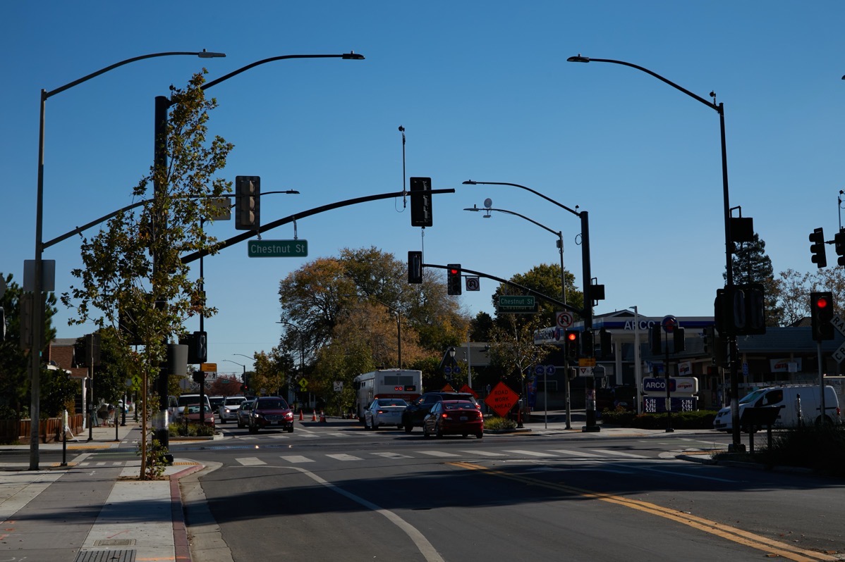 Curiously, for all of the work that went into Redwood City’s Middlefield Road project, the new traffic signals at Middlefield Road and Chestnut Street still have not been activated: