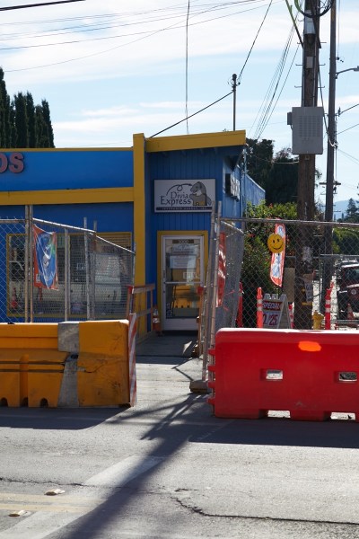 As you can see, this makes access to the buildings on the right rather difficult for the time being. A combination of wooden bridges and the occasional fenced access walkway helps, but you really have to want to go to one of these businesses to make the journey.