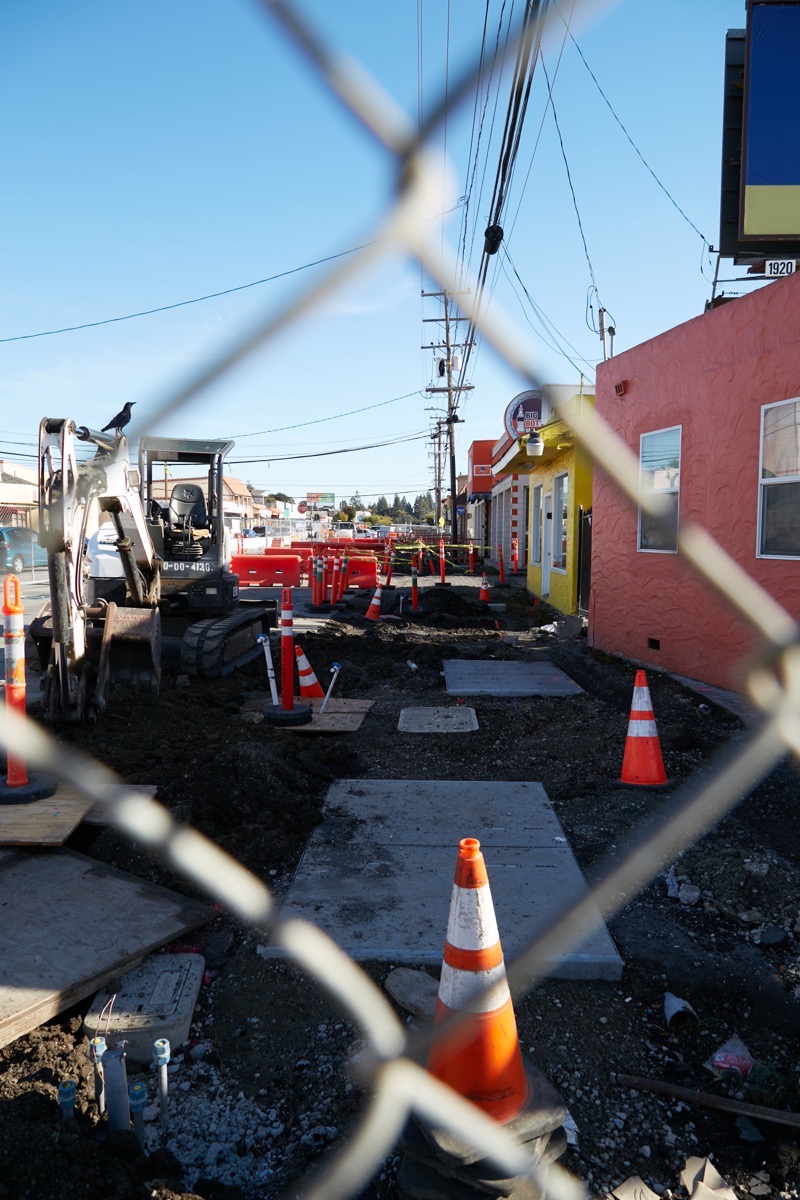 Currently, the city has dug up the sidewalks and part of the street on the southbound side, in order to build the channels through which the newly undergrounded wires will run: