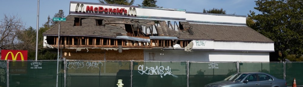 I was interested to note that as yet a permit to construct a new building on this site has not yet been filed. Thus, although we won’t have to continue looking at this eyesore along Woodside Road for much longer, I don’t expect to see a new building rising on the site anytime soon. The fire occurred in the early morning hours of August 7. Thus, it took exactly four months for the property owner to decide that the building couldn’t be salvaged. This demolition permit, because it leaves the foundation and utilities, gives hope that a new McDonalds might be built on the site, but doesn’t guarantee that. I wouldn’t be surprised if the plan is to simply clean things up to where people aren’t complaining, and only then decide if it is worth building a new restaurant (McDonalds or otherwise) — or whether the property should be sold to a developer for some other purpose. We’ll know once we see a building permit for the site, or when some other project is added to Redwood City’s Development Projects list.