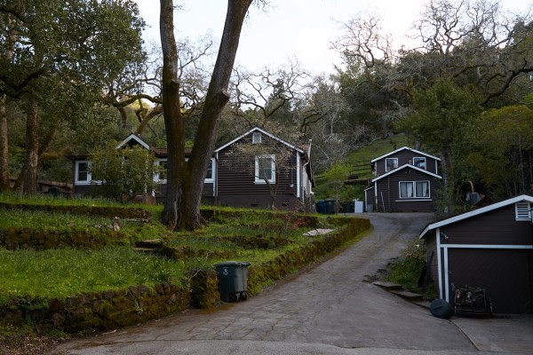 This smaller building with the turquoise metal roof — which you can identify in the map on the sign I showed earlier — is San Mateo County Fire Station #18. Beyond that — and not visible — is the Canyon Oaks Youth Center, a residential treatment facility addressing the needs of youth who have experienced significant trauma. The Youth Center not only works to support their health and recovery, but also acts as a community school (grades 7-12) offering vocational classes.
