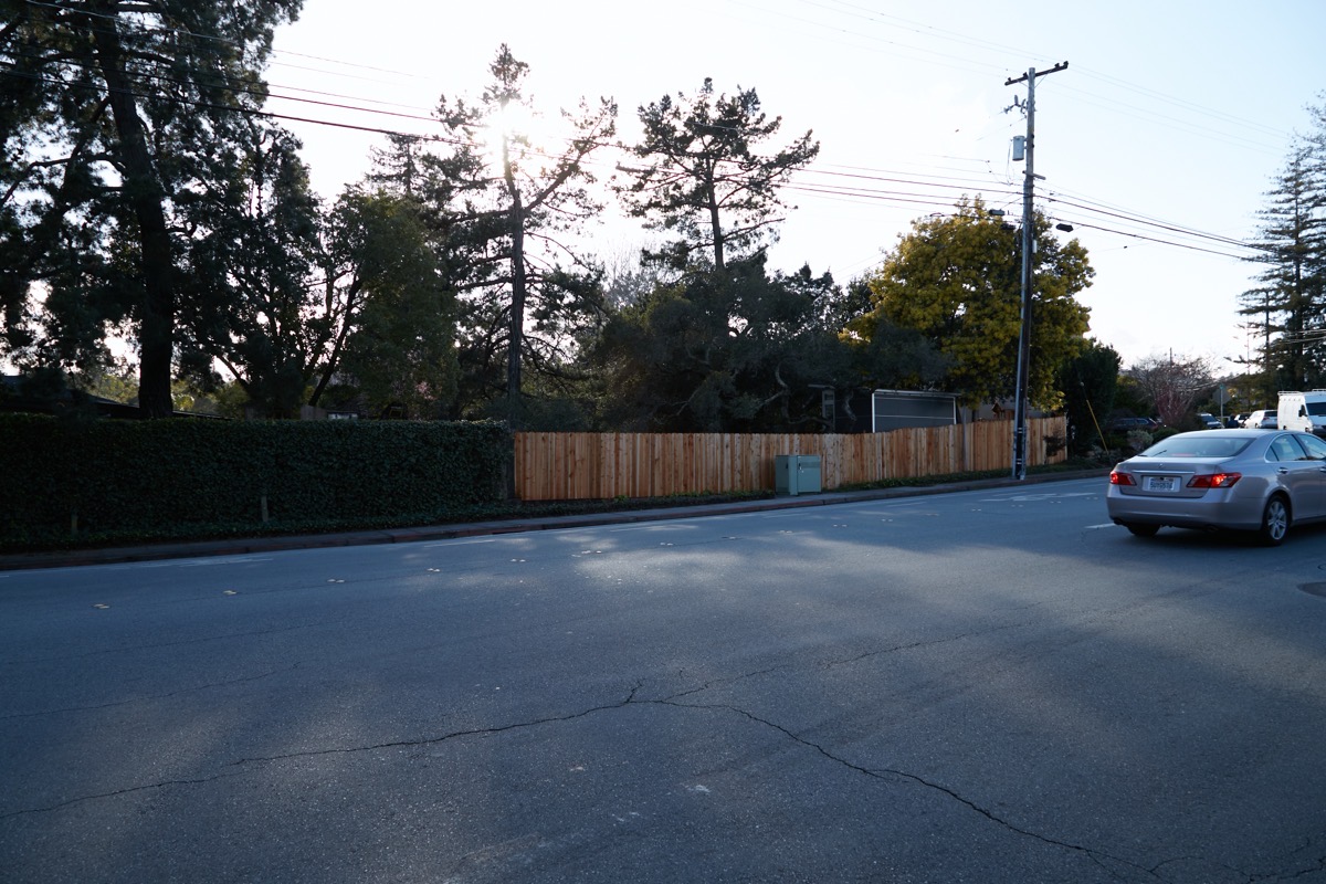 From here Cordilleras Creek runs well behind a number of houses, so you have to take it on faith that the creek is still there, all the way out to Alameda. There, too, you really have to do a bit of looking to actually find the creek. On the west side of the street, the place where it crosses under is behind a fence: