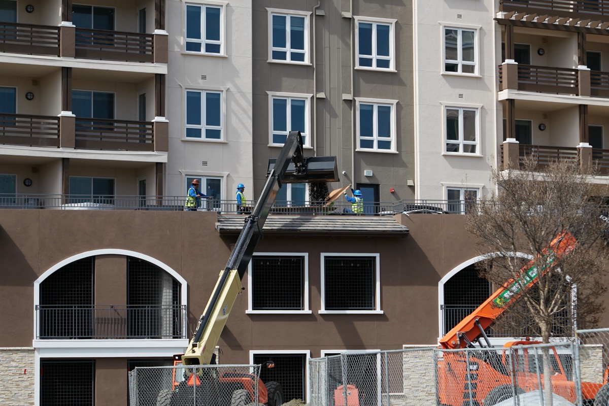 Across the water, on Main Street, the 125-unit affordable housing project at 353 Main Street is clearly in its final stages: I watched as soil was being added to the planters that will help bring a bit of nature to the third-story residents-only outdoor space: