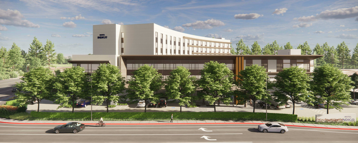 Continuing my walk, I came to 501 Industrial Road, on Industrial just south of Holly Street. Formerly the home of an electrical supply company (Bayshore Supply; they’ve since moved into a much nicer building at 1060 Brittan Ave.), this site has been cleared, and is now waiting for final project approval. The project under consideration is the 191-room Hotel Indigo. If approved and built, it should look something like this: