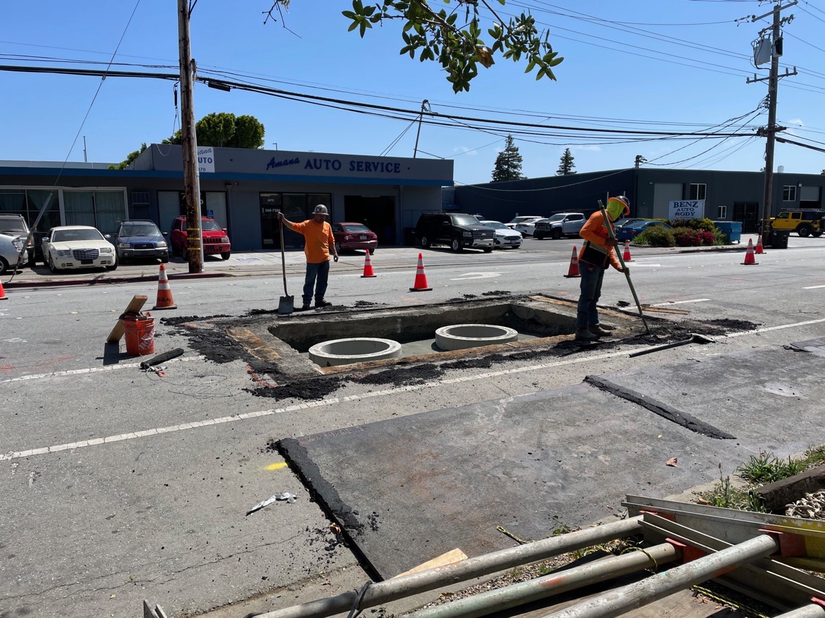Moving on to Industrial (Way), I noted that work continues to run underground fiber-optic cables, I believe in order to enable Sonic to bring their 10Gb internet service to parts of Redwood City: