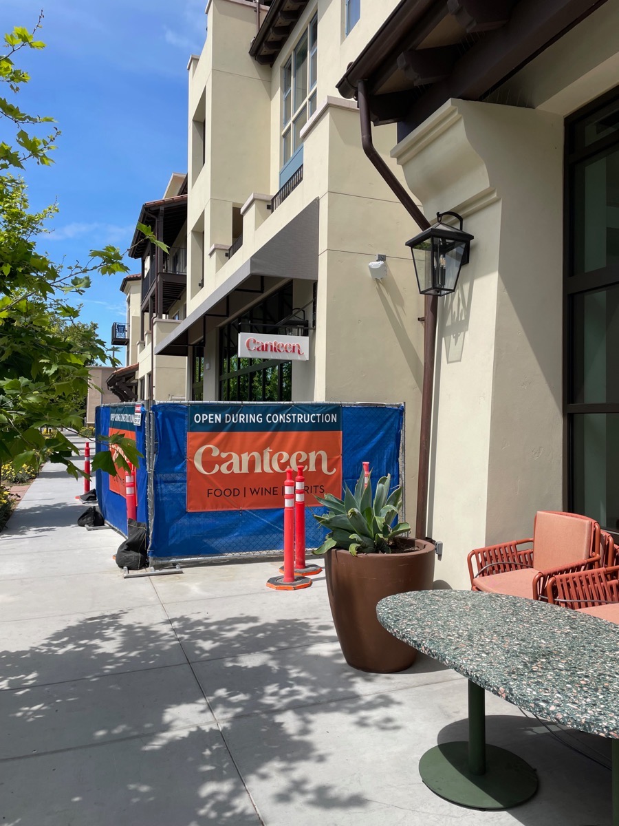 Construction may be complete, but there are still signs of work going on. However, don’t let that stop you: that work is largely being done to fit out the remaining retail spaces for the various restaurants and shops that will be taking up occupancy along El Camino Real and Oak Grove Avenue. As I was delighted to discover, a number of the development’s retail tenants have already opened their doors: today you can visit Proper Food, Andytown Coffee Roasters, Canteen Coffee Shop (along El Camino Real), and Canteen (on the Oak Grove Avenue side). Coming soon are Burma Love restaurant; Barebottle Brewing Company (both a taproom along Oak Grove Avenue, and a brew truck parked in the plaza); Robin; Il Mercato di Che Fico and Che Fico Parco Menlo; and (from Beverly Hills!) Mírame. All in all, it appears to be an incredible lineup that is sure to attract a lot of patrons from not only Menlo Park but surrounding communities as well. I know that my wife and I will certainly be checking some of them out.