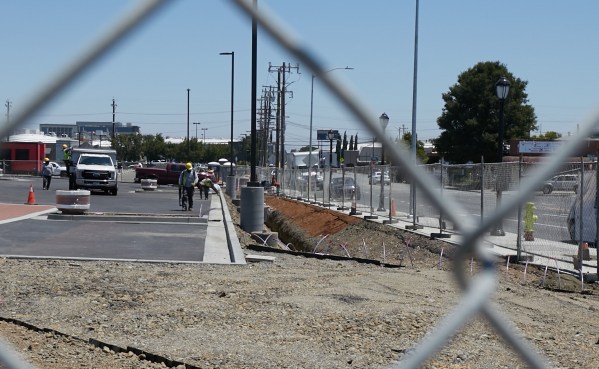 First up, I checked in on the status of our new CVS Pharmacy, at the intersection of Woodside and Bay roads. The building itself looks complete, as does the parking lot. All of the work I am now seeing is focused on the site’s landscaping, which looks pretty much ready for planting: all of the irrigation seems to be in place. One new addition this week, though, are a set of large pots that presumably will be planted with trees: