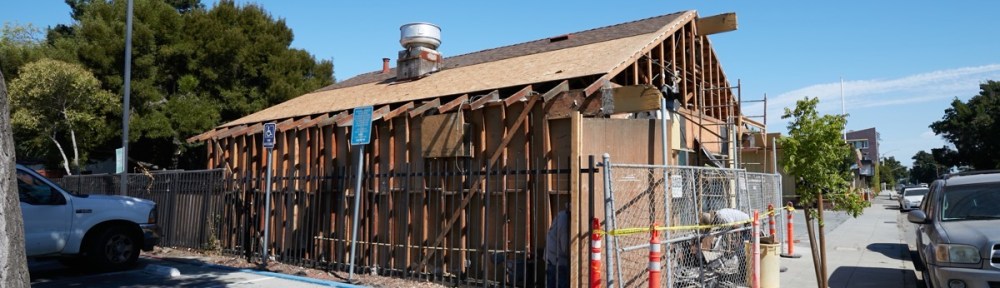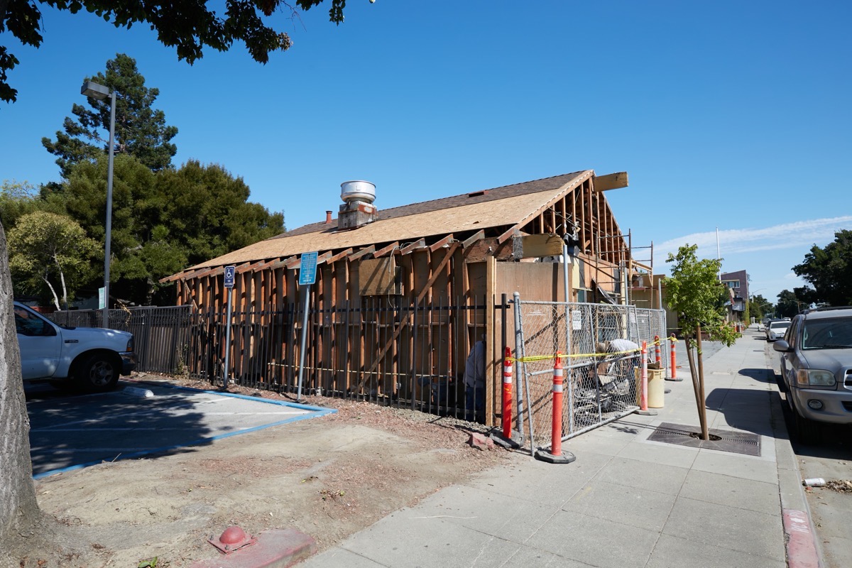 Once I got to Woodside Road, I visited two projects that are currently underway just across the street from one another. First, the renovation of the Bravo Taqueria restaurant. I had been led to believe that this was going to be a fairly light remodel, to make the place more ADA-friendly, but as you can see it is turning out to be far more than just a minor update: