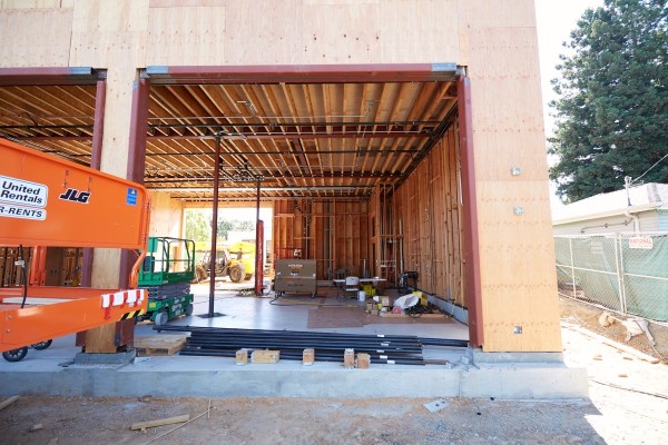 As you can probably tell, this new building is not going to blend in with the neighborhood quite as well as the old one did. But one thing this new building design does is free up space behind the building that will allow some emergency vehicles to enter from the building’s rear (using a new driveway off Howard Avenue); previously, all of the fire trucks had to back in to the bays using the garage openings on Alameda de las Pulgas. Now, although one of the bays will still require trucks to back in, the other can be entered from the rear, as you can see when you look into the bays from the Alameda de las Pulgas side of the building: