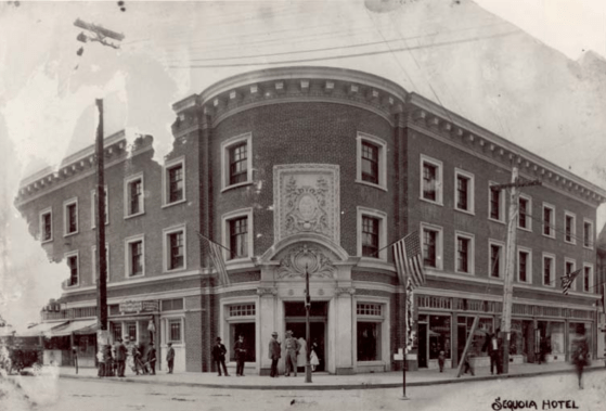 The Hotel Sequoia was built back in 1912 for a cost somewhat above $100,000. Of course, those are 1912 dollars; that amount of money would apparently be worth about $3.2 million today. Which to me still sounds quite cheap, given that you can pay more than that for a high-end home around here these days. But consider a few things. For one, the hotel was (and currently is) only three stories tall. There were only sixty rooms, all on the second and third floors. And those rooms were quite basic by today’s standards: they didn’t have en-suite bathrooms, for instance. For those, it seems you had to go down the hall. As for the ground floor, that contained the hotel’s lobby, its kitchen, a dining room, a barber shop, and a public restaurant.