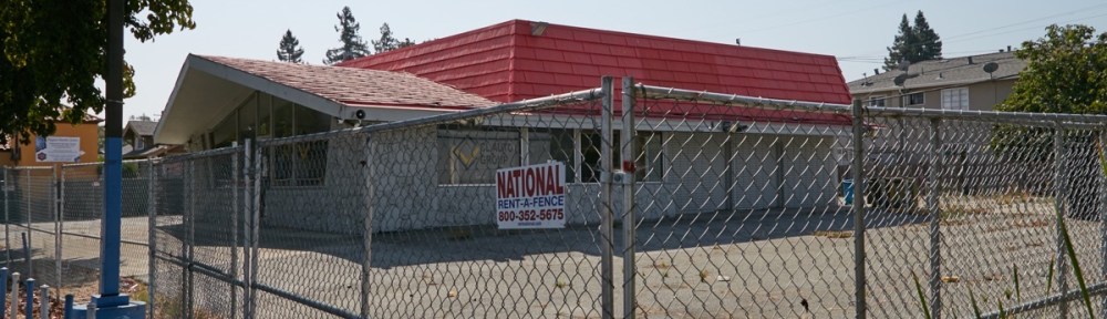You probably recognize this site, at 620 El Camino Real, between Hopkins and Brewster avenues. For some time now this has been a place where used cars were sold: most recently it was home to CL Auto Group, but before that it was Toyota 101’s used car center, and before that, back when we still had a Honda dealership directly across the street, it was Honda Redwood City’s used car center. In the distant past, as you might guess just from looking at the building, I believe it was a restaurant of some sort.