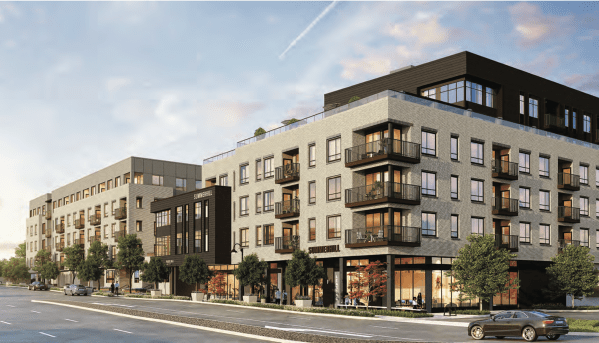I don’t expect you to recognize it: this project was approved by the San Carlos Planning Commission less than two weeks ago, for a parcel on El Camino Real right up against that city’s border with Belmont. Today (and, for at least a bit longer: the builder hopes to get underway next May, and complete the building by July 2026) the parcel is home to a CVS Pharmacy, but eventually it may well be occupied by the six story (a new high for San Carlos!), 242-unit residential project you see above.