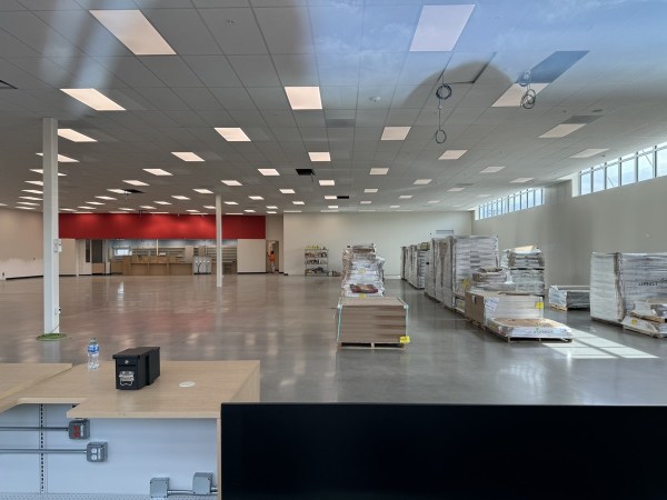 As you can see, the fixed parts of the interior are complete, including the checkout counter (in the foreground of the above picture) and the pharmacy area (in the back). The next step, it seems, is to build the shelving, which I assume is what is on those pallets in the center of the floor. Then, the merchandise from the old store directly across Woodside Road can be transferred over, and the new store can open its doors.