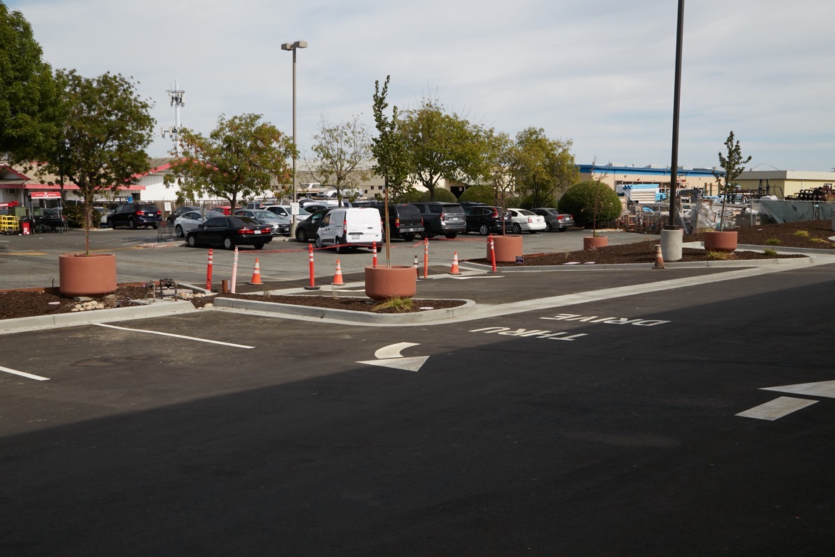 Because I was able to wander around the entire building, I was able to examine some of the development’s more interesting features. I’ve written in the past about the bioswale that is located along the Bay Road side of the property; it is designed to channel runoff and filter out debris and pollution. As it turns out, there is a second one along the backside of the property, against the property line with the adjacent Smart & Final store: