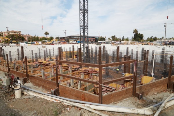 Finally, out on El Camino Real, tower crane number 3 has been instrumental in helping construct the three-level underground parking garage that will be located there: