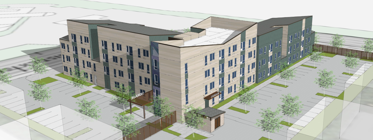 MidPen has designed their project to fit within SB-35 guidelines, which should streamline the approval process and get it underway sooner than normal. Their plans call for a 53,000-square-foot, three- and four-story residential building containing 108 affordable housing units (all studios) and two two-bedroom managers’ units. In addition there would be a pair of two-story amenity buildings. Both to save costs and to further streamline the development process, MidPen intends to use modular construction in this development. Unlike the adjacent Navigation Center, which was also built using modular construction and still shows some evidence of that fact, this project apparently would do a better job of hiding the fact that it is composed of modules: