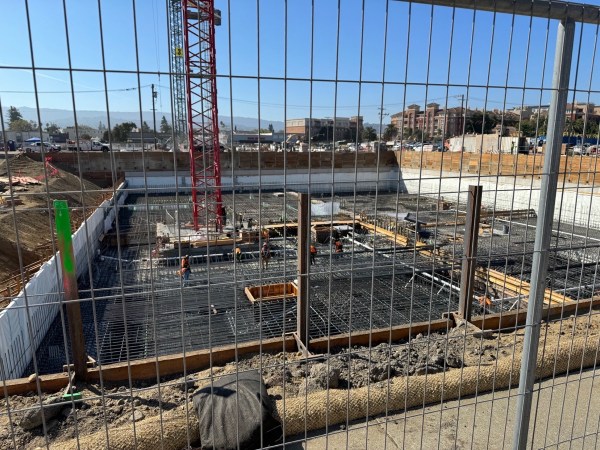 The project site currently sits well below the built-up site where the townhouses are to go, and below where the Navigation Center is now located (also on a built-up site). My understanding is that MidPen’s project will be built up as well. Which may explain the large piles of dirt that have appeared on the adjacent townhouse project property: