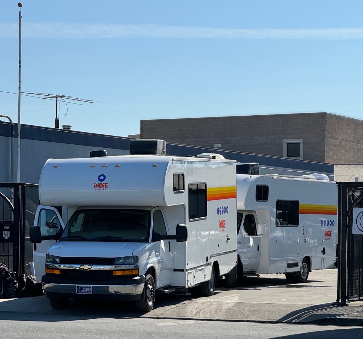 All of these motorhomes are from an outfit called Indie Campers, which rents campers in North America, Oceania and Europe. Although they constantly refer to their local rental location being in San Francisco, it is in fact located at 2618 Bay Road. Which technically isn’t in Redwood City — it’s in North Fair Oaks — but I took the above photo from the sidewalk along Stanford’s Redwood City campus, which is in Redwood City. (There, Bay Road is the border between the two.) In any case, if you or someone you know is interested in renting an RV, either here or somewhere else within their service areas, Indie Campers seems worth investigating.