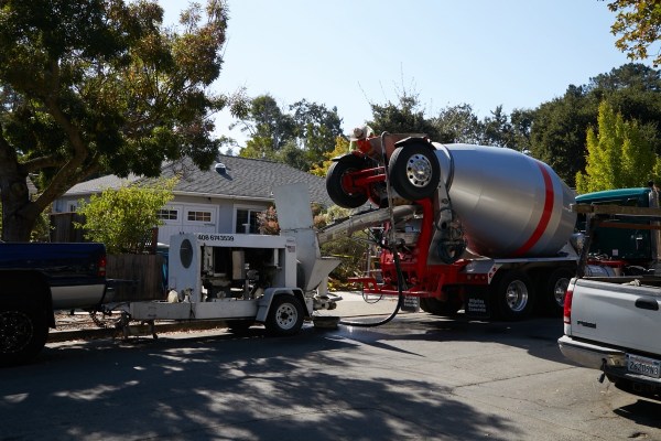 Pretty much directly across the street, at 517 Hillcrest Dr., concrete was being pumped to the rear of an existing single-family home: