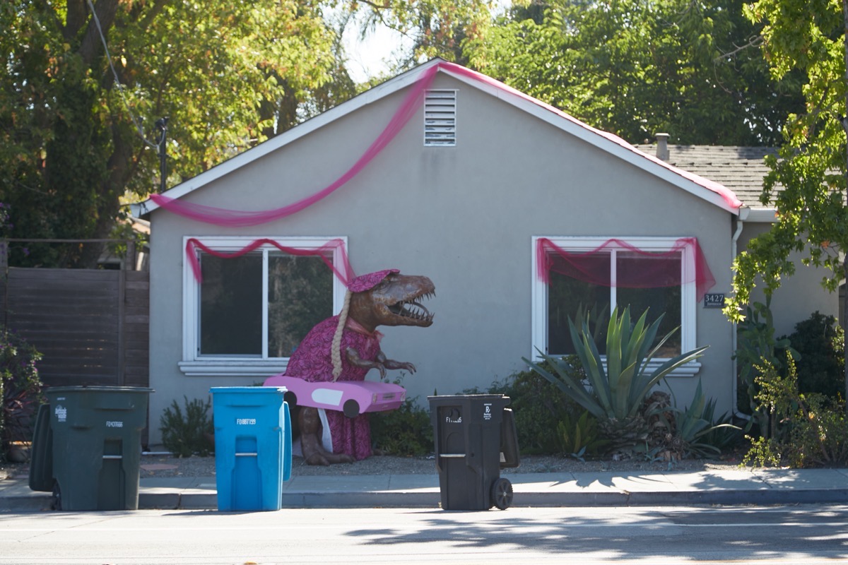 I ultimately made my way out to Jefferson Avenue, where I looked in on our old friend, Dug the Dinosaur. These day’s he’s playing Barbie: