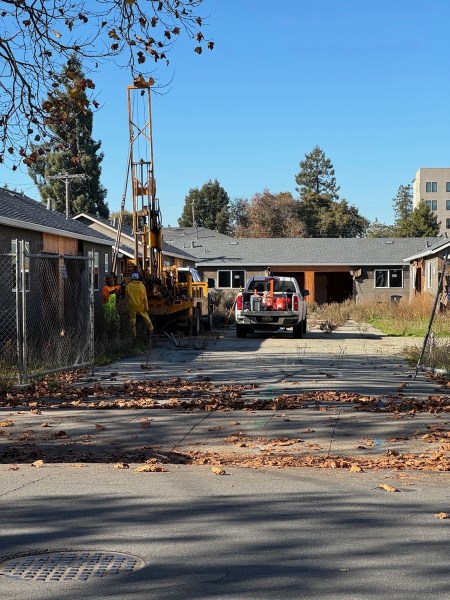 The 1390 Woodside project may be proceeding slowly, but truthfully I think the winner of “slowest project” has to go to the five duplexes that are now half-built at 112 Vera Ave. That project began in August of 2019, with the demolition of the long-abandoned and rotting duplexes that previously stood here. Since then it has proceeded in fits and starts, with long — on occasion very long — periods of idleness. I have noted no visible progress for just over a year now, but continue to go by on the off chance that work will resume. And this week, work of a sort was indeed going on, although it was a very curious kind of work: