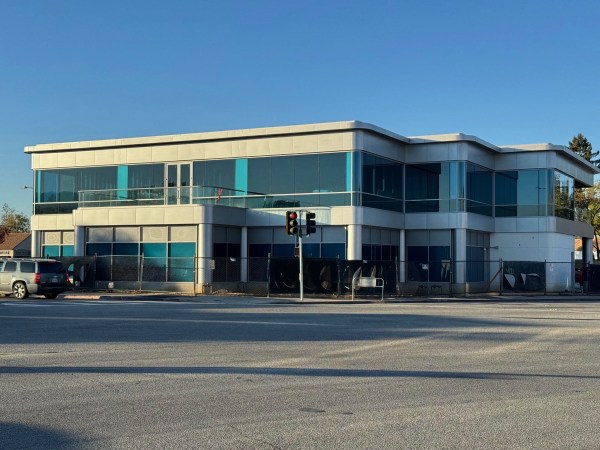 This project feels like it should be in the running for slowest project ever. The site (there used to be a bank here) was cleared in July of 2021, and by August the foundations were being formed. Now, after more than two years and three months, the building still is not complete. Some of the glass has yet to be installed, and I don’t think that the cement floor on the lower level has been poured (that lower level is almost entirely a parking garage, but thanks to the walls that make this look like a conventional two-story building, it’s hard to see into that garage from the sidewalk). It appears that the interior of the upstairs needs to be finished, and of course the landscaping has yet to be started. I don’t know if a tenant has been identified for this building: perhaps the developer is holding off on the interior build-out until one is, so that it can be customized to suit that new tenant. In any case, the construction fences are still up around the building; I’m not going to stop my clock and call this done at least until those come down.