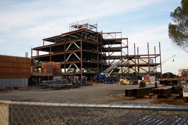 This week I spent some time exploring the life science office/lab building under construction at 200 Twin Dolphin Dr., just across that street from the Grand Bay Hotel. Since my last visit, the building’s framework has gone up rather quickly: