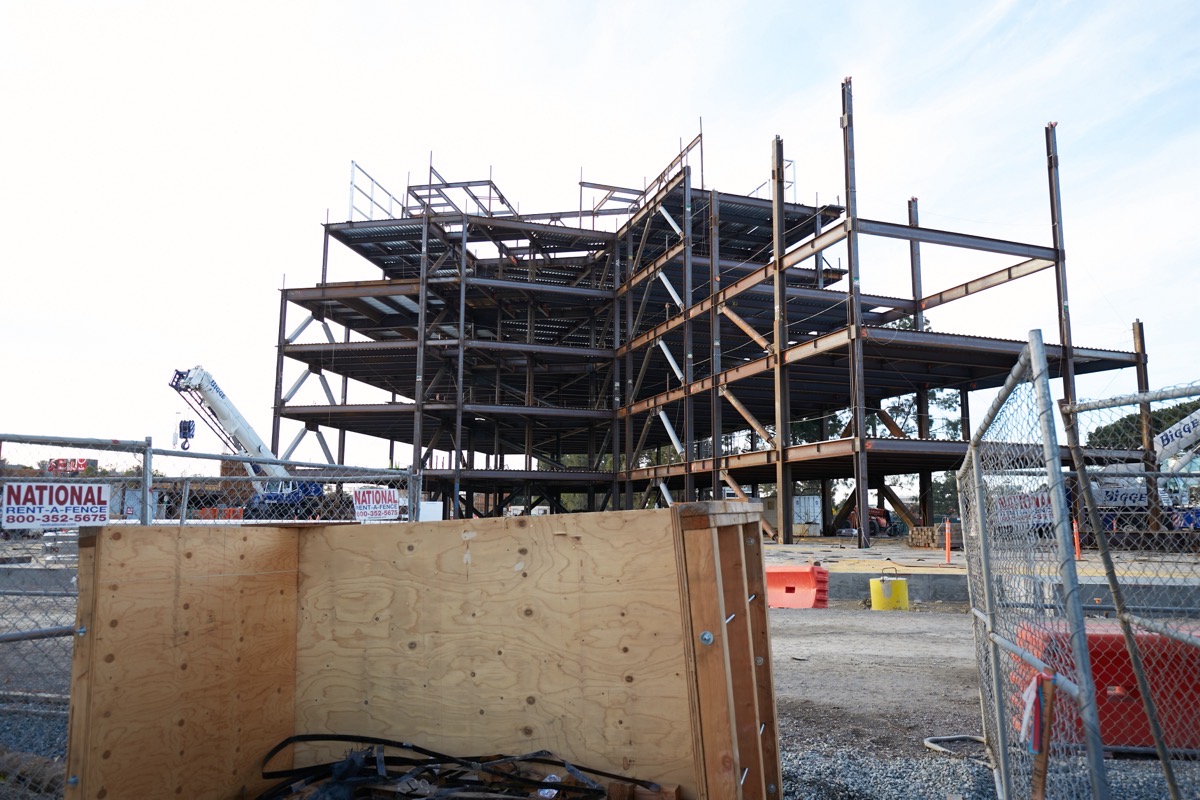 This week I spent some time exploring the life science office/lab building under construction at 200 Twin Dolphin Dr., just across that street from the Grand Bay Hotel. Since my last visit, the building’s framework has gone up rather quickly: