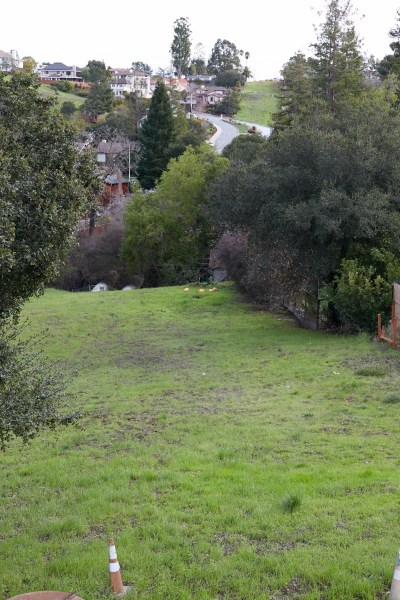 Walking this section involves a lot of up-and-down. I theoretically could have walked up Bennett Road and then climbed the hill, but instead I followed Cordilleras to Canyon Road to Oak Knoll Drive. Coming down Oak Knoll, I then bore left on Hillcrest Drive, which took me up the back side of the hill you see in the above image. Standing on the right-of-way at Hillcrest Drive, a view to the south looks like this: