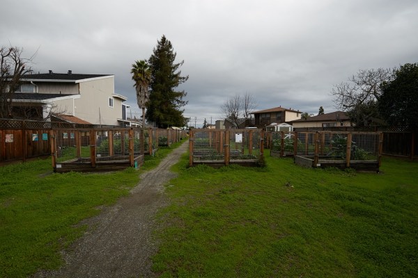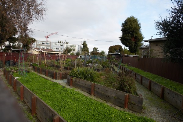 Before it hits Middlefield Road, it provides the land for the lovely little Friendship Park, which has a small play structure but mostly consists of a sea of community garden beds: