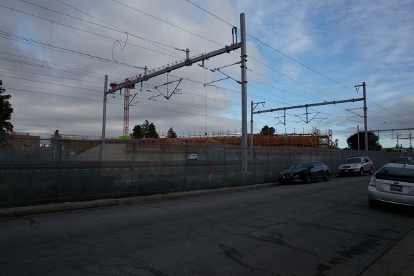 The route then reaches the Caltrain tracks (on Westmoreland Avenue, midway between Buckingham and Dumbarton avenues, for the curious), which is where I ended my first day’s walk: