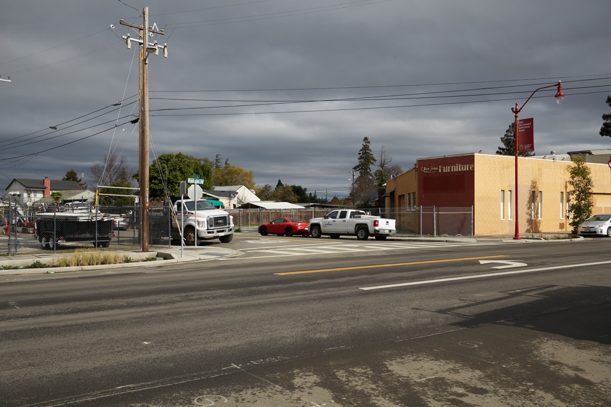 Day two picked up on the other side of the tracks, where I first spent a bit of time exploring the affordable housing project you can see in the above photo (but that’s a subject for another day). The right-of-way continues on its merry way here, slicing through block after block of mostly residential neighborhoods in North Fair Oaks: