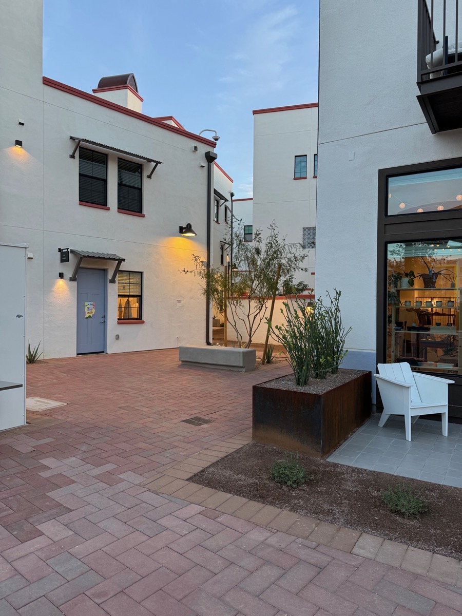 Culdesac has plenty of bicycle and Bird scooter parking, but only a single lot with a relatively small amount of parking for cars. Staying true to Culdesac’s mission, the parking in that lot is not for vehicles owned by residents, but is instead for visitors, for Waymo pickups and drop-offs, and for a handful of cars available for residents to rent. Instead, residents are encouraged to take alternative forms of transport: they receive passes that enable unlimited free rides on Phoenix’s light rail, streetcars and buses, plus they get 15% discounts on all Lyft rides and 15% off Bird scooter rides. Finally, for those rare times when only a private car will do, on-site electric cars can be rented for as little as $5/hour.