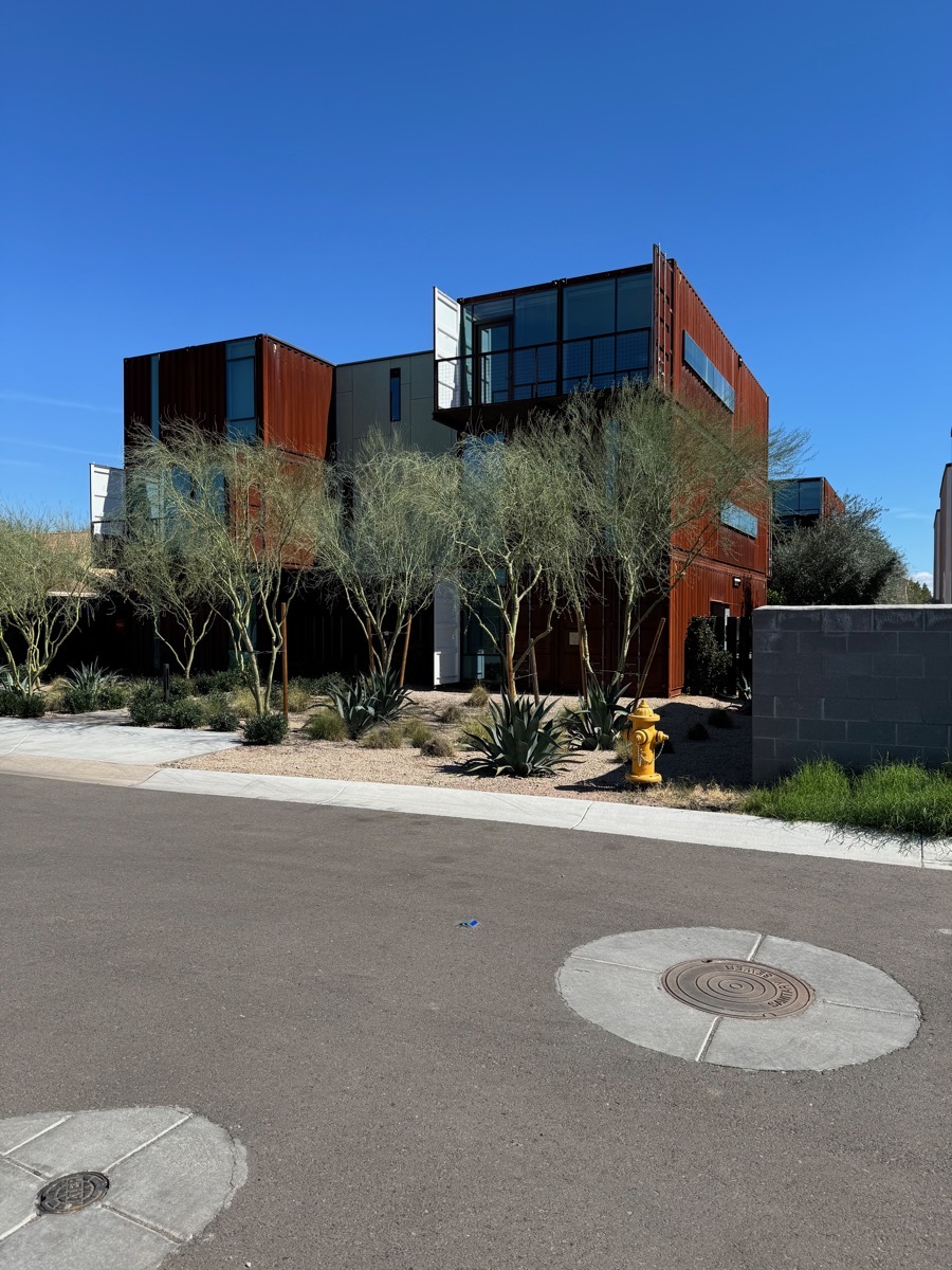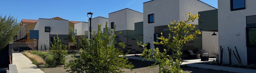 This week I’ve been in Arizona, attending a family reunion of sorts with members of my wife’s family. She has a sister who lives in Tempe, and a brother who lives part-time in Mesa, so the reunion took place in that general area, just east of Phoenix. While there, I took the opportunity to check up on two residential projects I’ve been long interested in that show some real out-of-the-box thinking on the part of the developers. Both developments seem to have gained traction, and hopefully can serve as models for projects in our own part of the country.