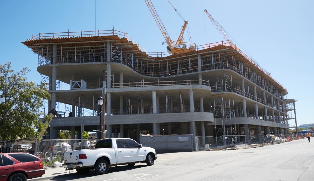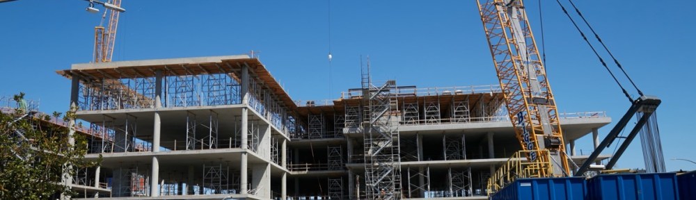 Between building E (north) and building B (the one on El Camino I began with) will sit building C. This one isn’t as far along as the others, but it is well above its subterranean garage now: