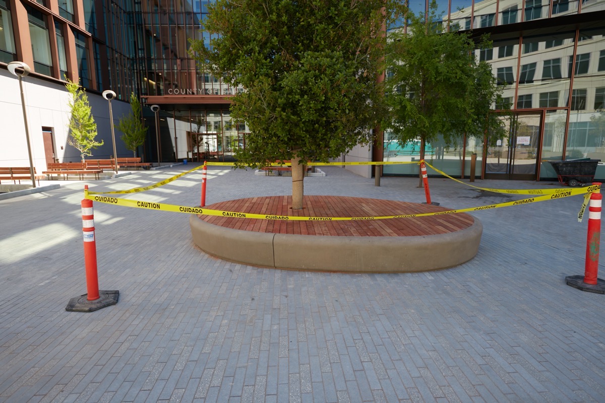 Back closer to home, I went back by the county’s new office building project — employees should be moving in almost any day now, it seems — and most of the construction fencing is gone. Perhaps more importantly, the low round structures that I initially thought were planters, but by last week had wood framing inside them, are mysteries no longer: