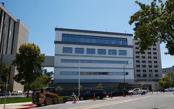 This very modern-looking facility, which was constructed by drastically remodeling a wing of the Maguire Correctional Facility, remains attached to that county jail (the older building with the small square windows to the right is the Maguire facility).