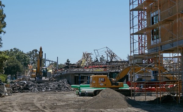 Thankfully, that building, along with the nearby homes and the Fair Oaks Health Center, which stands between this project and Middlefield Road, seem to have escaped the fire pretty much unscathed. Kudos not only to the many fire personnel who worked this eight-alarm fire, but also to the various county sheriffs who both evacuated those people living and working nearby and who helped manage the scene.