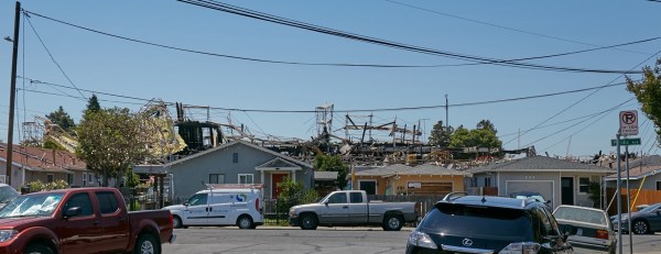Just behind those trees along the left edge of the above photograph, incidentally, are a number of single-family homes that line Pacific Avenue. Viewed from that street, it seems a miracle that those homes survived: